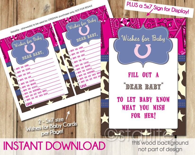MATCHING Western, Cowgirl Baby Shower "Wishes for Baby"